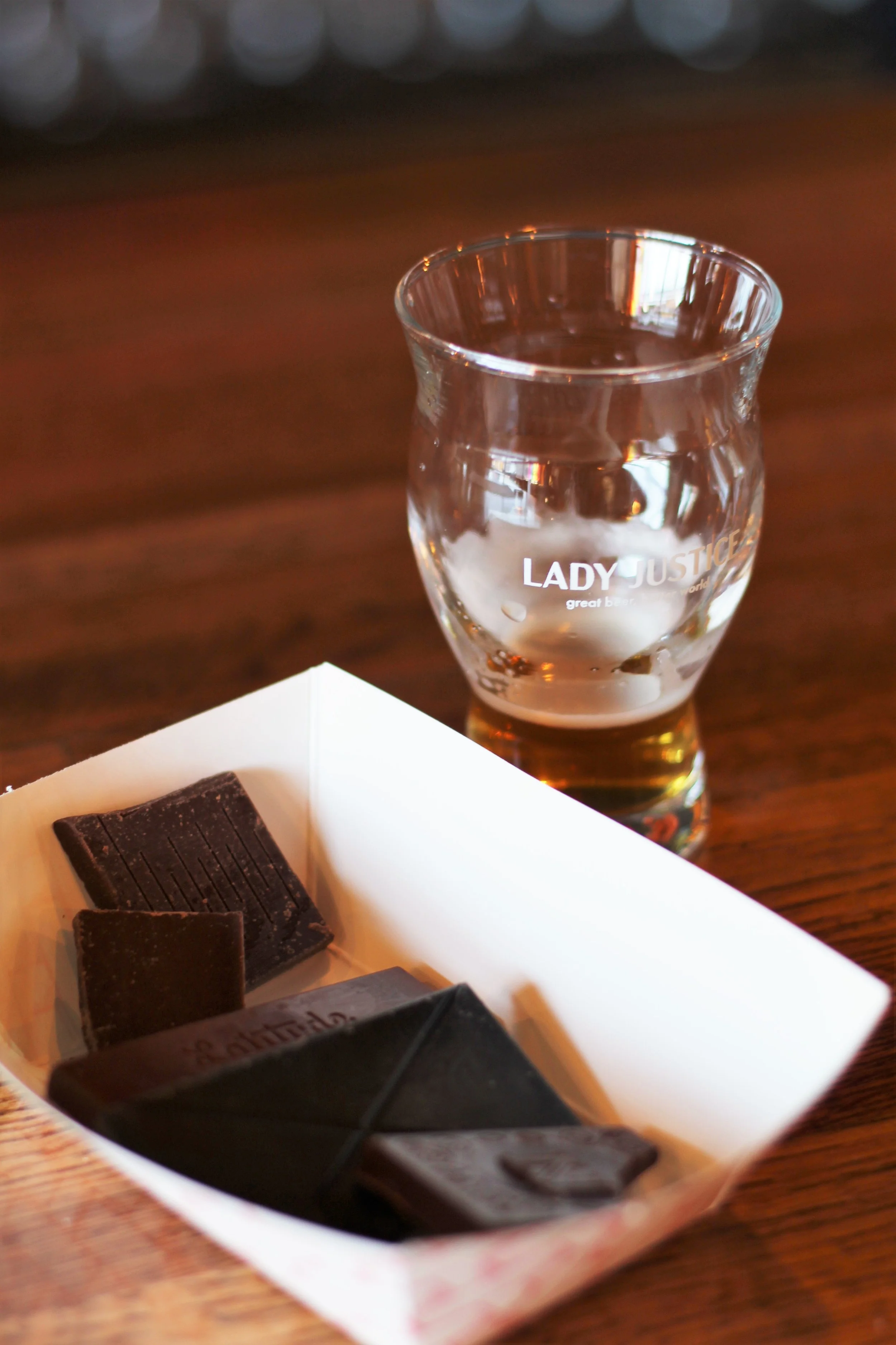 I got to lead a beer and chocolate pairing with my friends at Lady Justice Brewing in Denver in October, and the most popular pairing was between their Have You Hear the Buzz Bock made peach vanilla black tea with barrel-aged honey malt and Omnom’s Black n’ Burnt Barley bar. The almost-burnt caramel notes of the bar pulled forward the peach and vanilla of the beer and snapped them into focus.