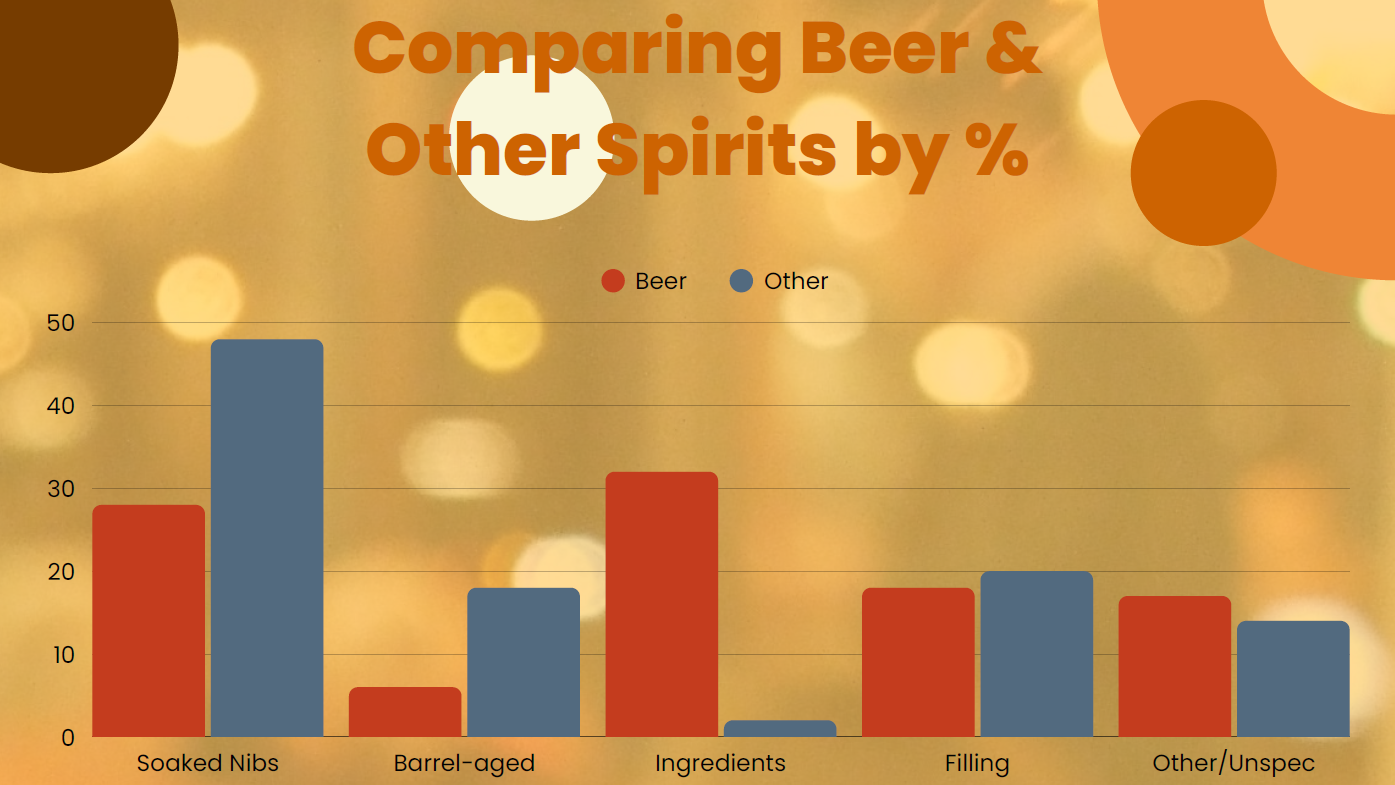 This graphic and others in this post are taken from a presentation I have given titled From Bean to Barstool and Back: Collaboration and Commonality Between Chocolate, Beer, and Spirits. All statistics are from my own tracking and are not from verified industry-level data.